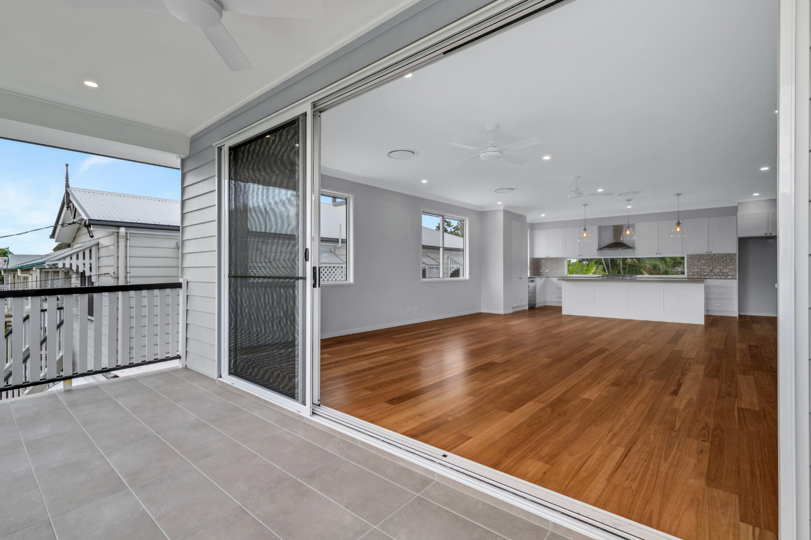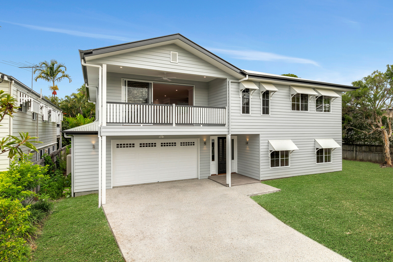 Spacious family home built on a flat square block in Corinda designed to suit the traditional character of the street. Downstairs areas suited for a growing family and upstairs has two beautiful balconies allowing for indoor outdoor flow.